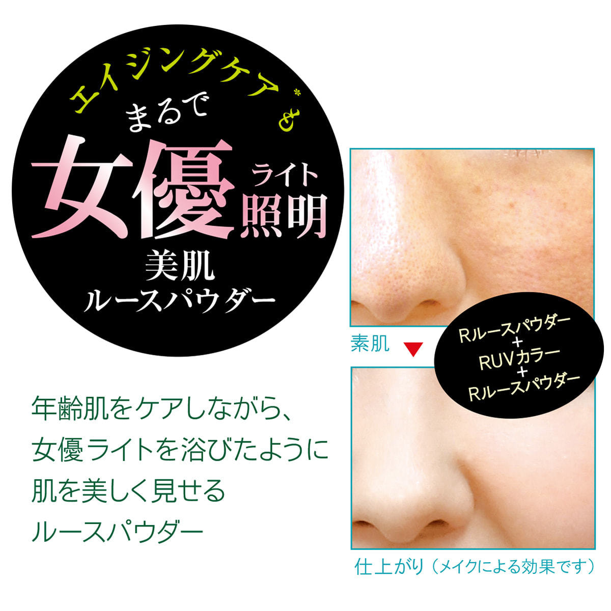 ルースパウダーにもエイジングケアという考えから、ラボプラスのメイン成分であるシワ・たるみをケアする「インステンシル」「アクアスピード」を配合。