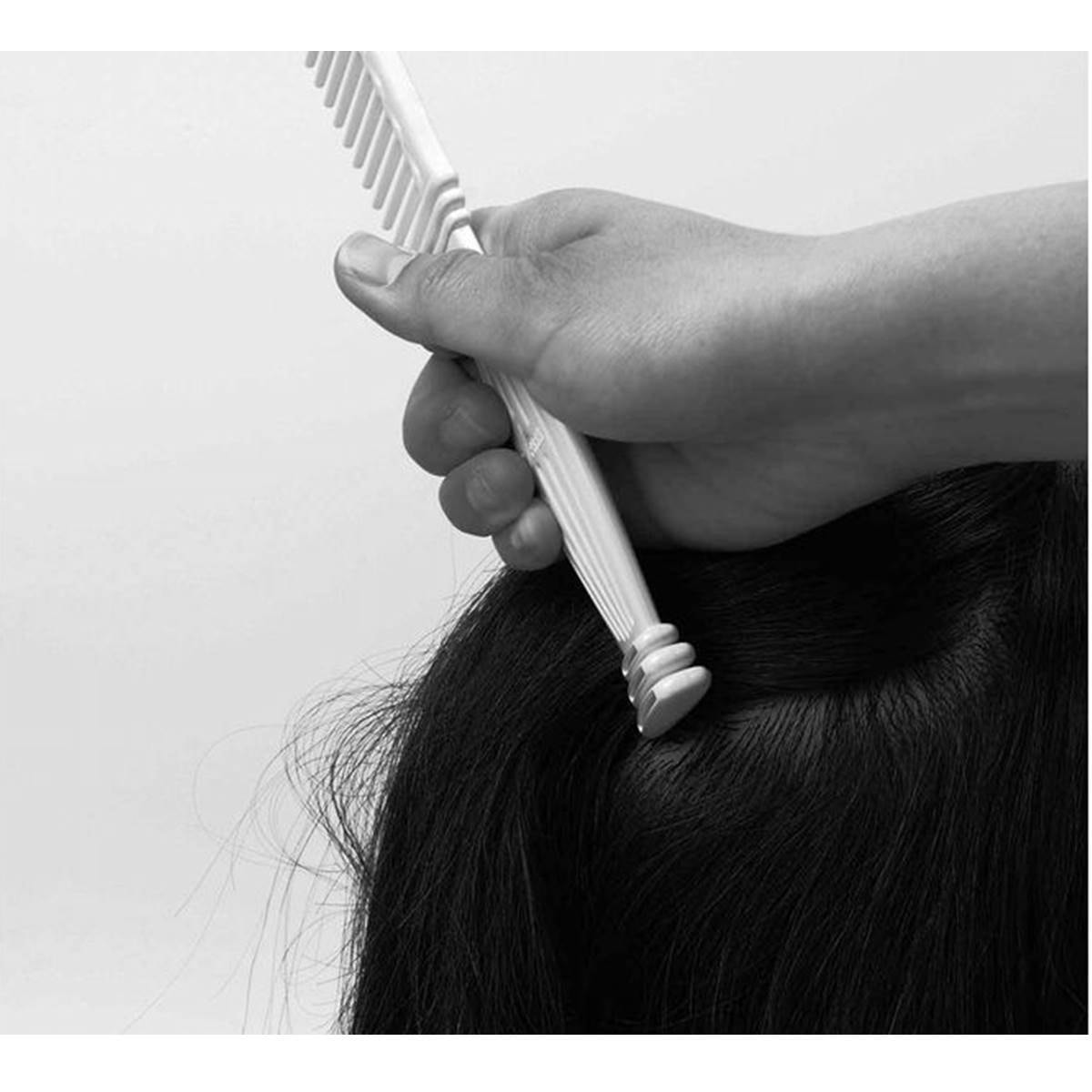 髪や頭皮がデリケートな状態になるカラーやストレートパーマ時にも指と同じ丸い歯がテンションを掛けすぎず優しくときほぐす、究極のダメージレスコーム。