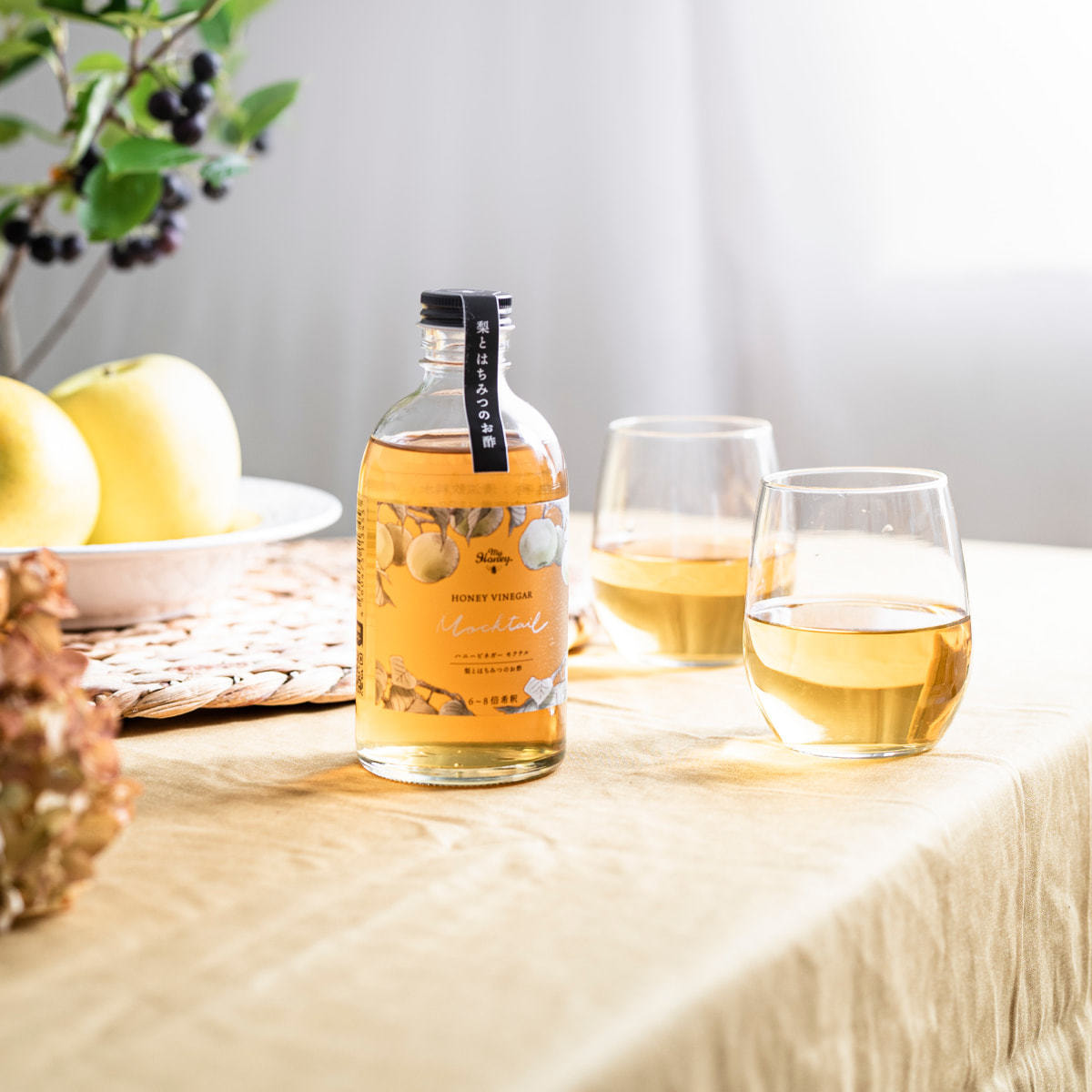 ●温度の変化等により、梨酢由来の沈殿物が出たり蜂蜜が結晶化することで白い粒状になることがありますが、品質には問題ございません。よく振ってからお使いください。