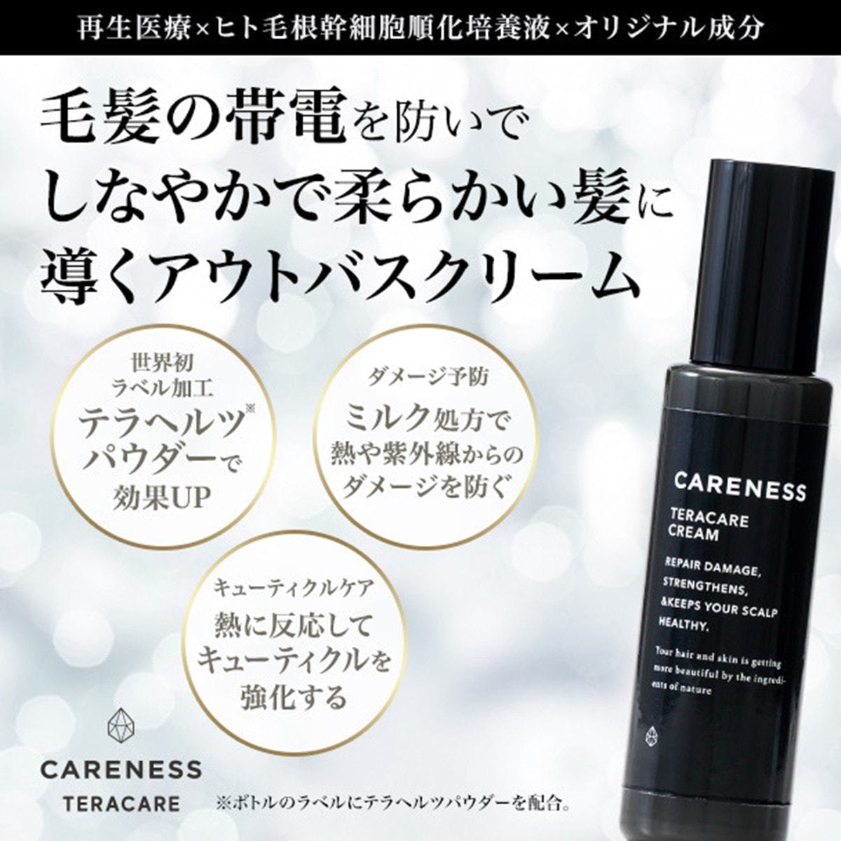 テラヘルツは、髪の内部に髪内部のたんぱく質や水分に対し、接着剤のような役割を担う電子を発生させることによって、有効成分を髪に定着させてくれます。